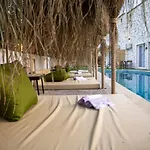 Urla 1867 Hotel'deki plaj aktiviteleri arasında güneş şemsiyeleri vardır.